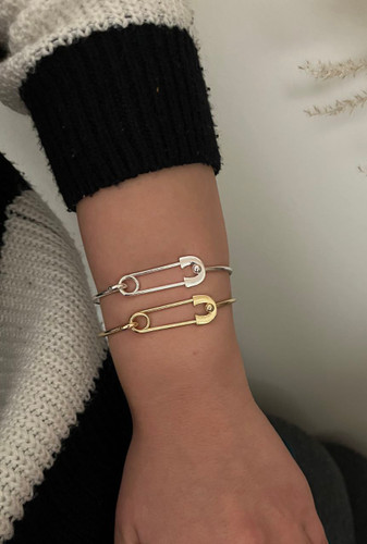 دستبند بنگل سنجاق طلایی دخترانه