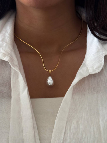 گردنبند نامرئی پلاک مروارید و صدف