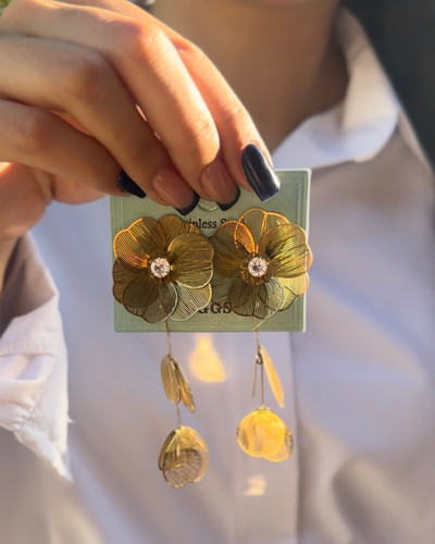 گوشواره میخی طرح گل طلایی