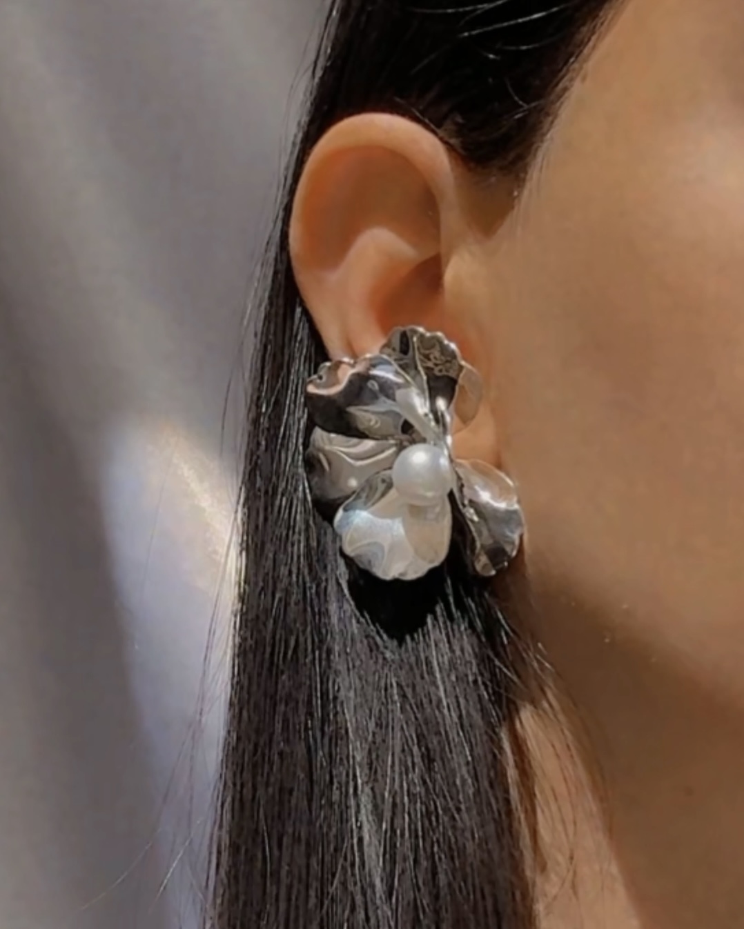 گوشواره گل دخترانه نقره ای